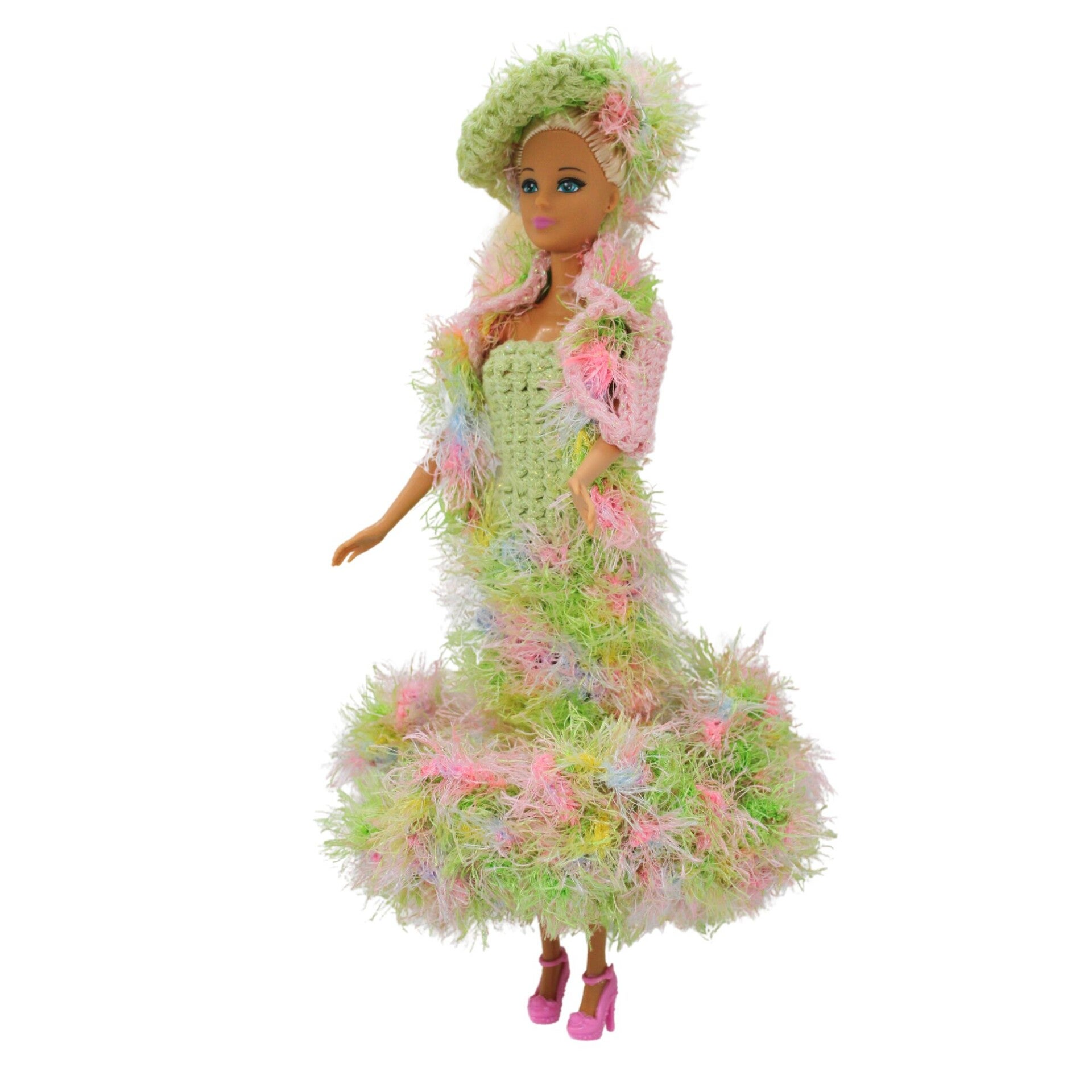Every colour. Every style. One-of-a-kind! . Each outfit is brought to life with a variety of yarns and textures, creating a rich, tactile experience. To complete the look, we've matched each dress with coordinating shoes, hats, and handbags, ensuring every ensemble is as harmonious as it is eye-catching.